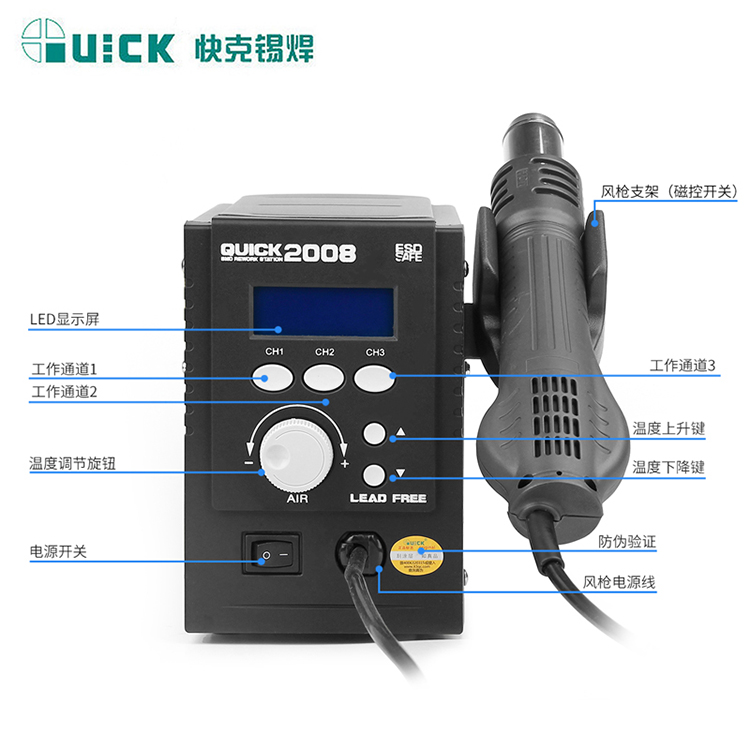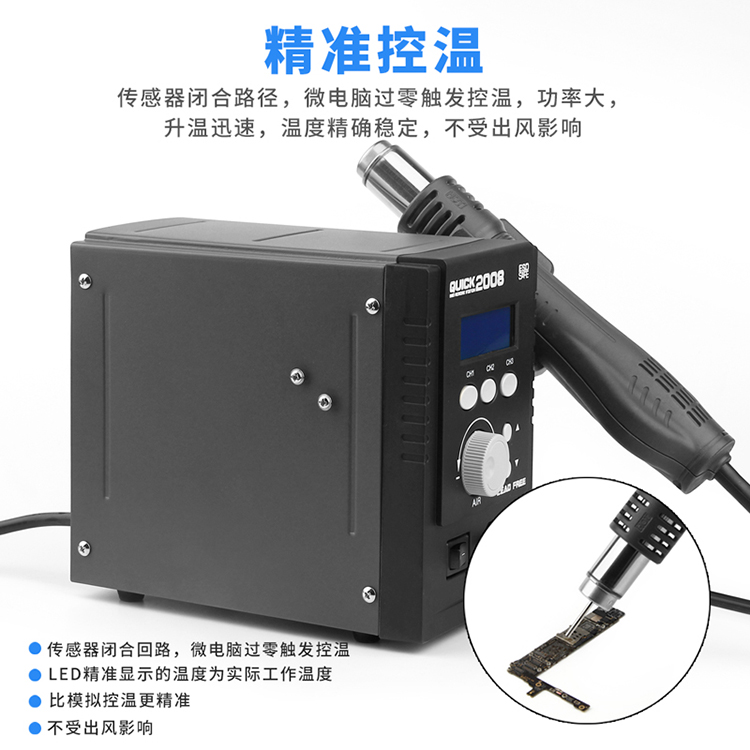 QUICK 2008 hot air gun disassembly soldering table lead-free anti-static adjustable digital display mobile phone maintenance constant temperature welding gun