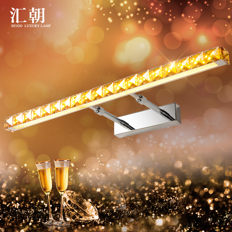 Luxury crystal mirror headlight led dressing room bathroom retractable mirror cabinet special non-perforated European makeup dressing lamp