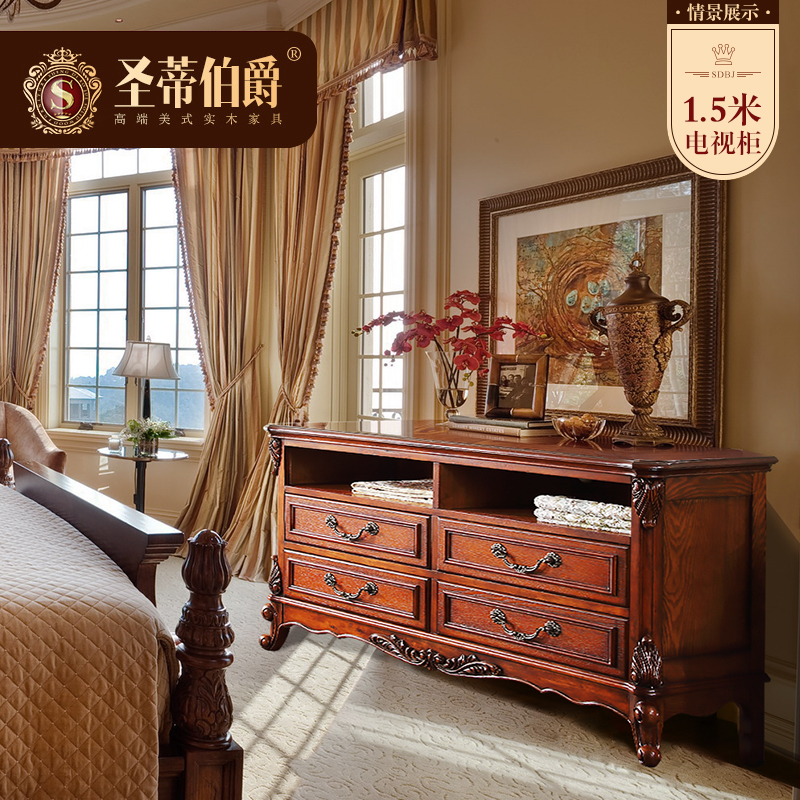 Luxury American red oak bedroom TV cabinet solid wood European master bedroom TV cabinet high retro floor cabinet 1 8 meters