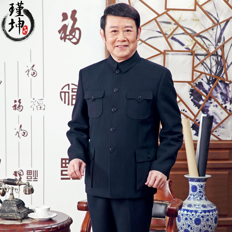 Woolen tunic men's suit middle-aged and elderly spring and autumn loose grandfather suit Chinese dress Chinese style clothing