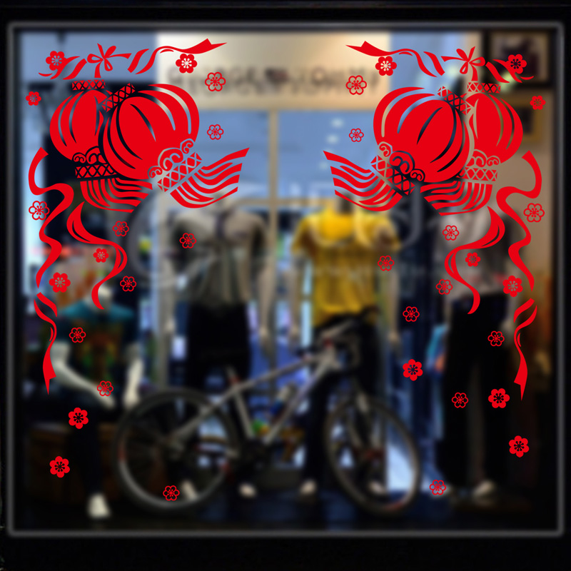 Spring Festival New Year Decorative Supplies Store Store Store Store Glass Window Sticker Red Festive Lantern Wall Sticker