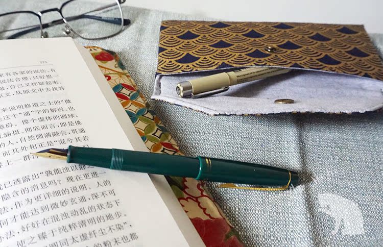 Dark tide blue sea wave glasses bag sun glasses bag pen bag stationery storage original handmade fabric 8too studio
