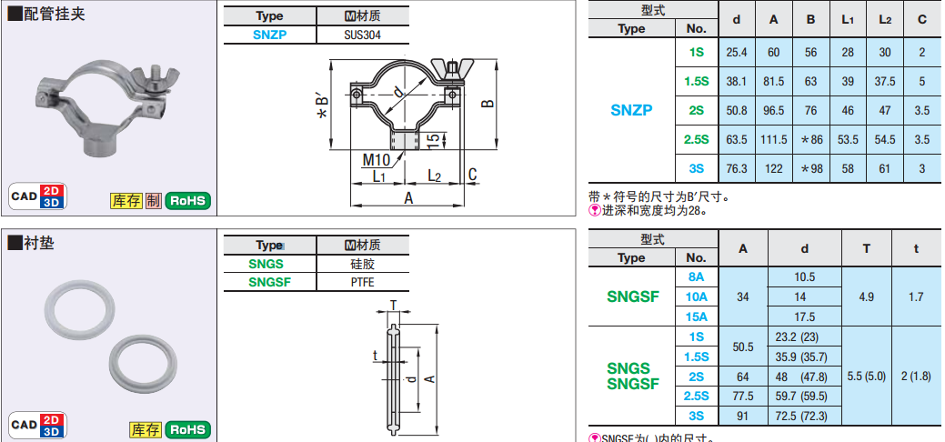 MIMIMI Mithrice Food grade cleaning works Joint piping hanging clip SNZP3S pipe buckle stainless steel