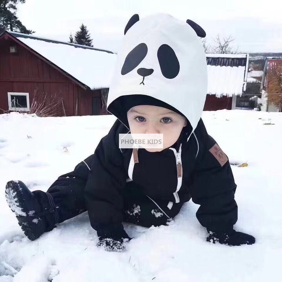 mini series 18 autumn winter Swedish children panda waterproof conjoined ski suit with baby thickened anti-chill cotton suit
