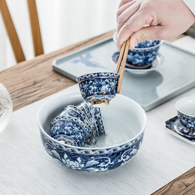 Large tea washing household pen washing blue and white ceramic tea set accessories celadon washing cup bowl tea ceremony six gentlemen zero matching water bowl