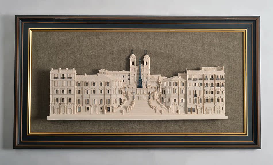 Fine Work Sculpture Architectural Style Building Picture Frame Soft-mounted Pendant Device Art Wall Accessories Light Lavish Sample House Display Centre Clubhouse