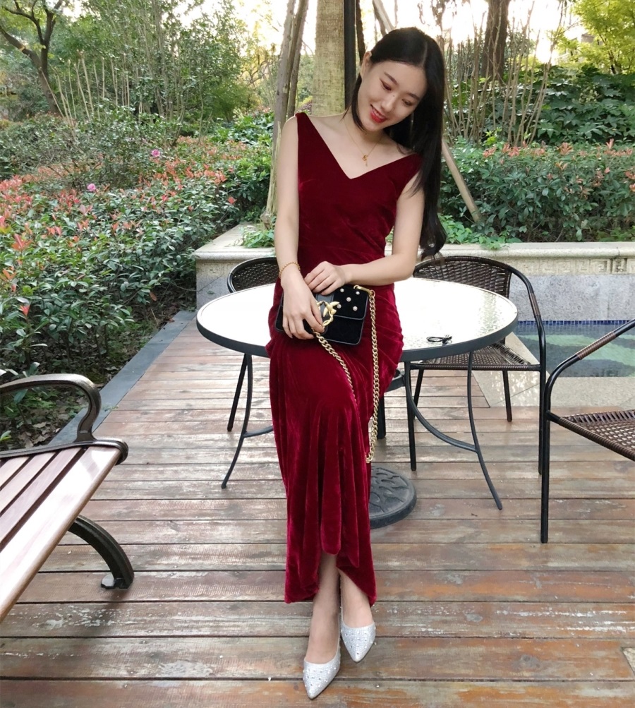 Bride Married Shoulders V-neck Skin Red Banquet Star Same Toast Annual Party Daughter