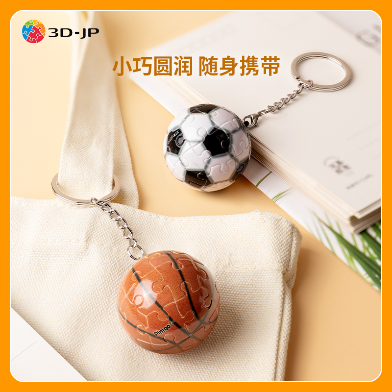 3D-JP creative key chain couple small pendant 3d three-dimensional spherical plastic jigsaw puzzle toy 24 pieces basketball globe