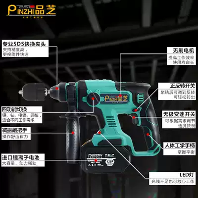 Pinzhi brushless rechargeable electric hammer drill Lithium electric impact drill Electric drill electric pick Industrial grade three-use lithium battery multi-function