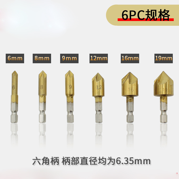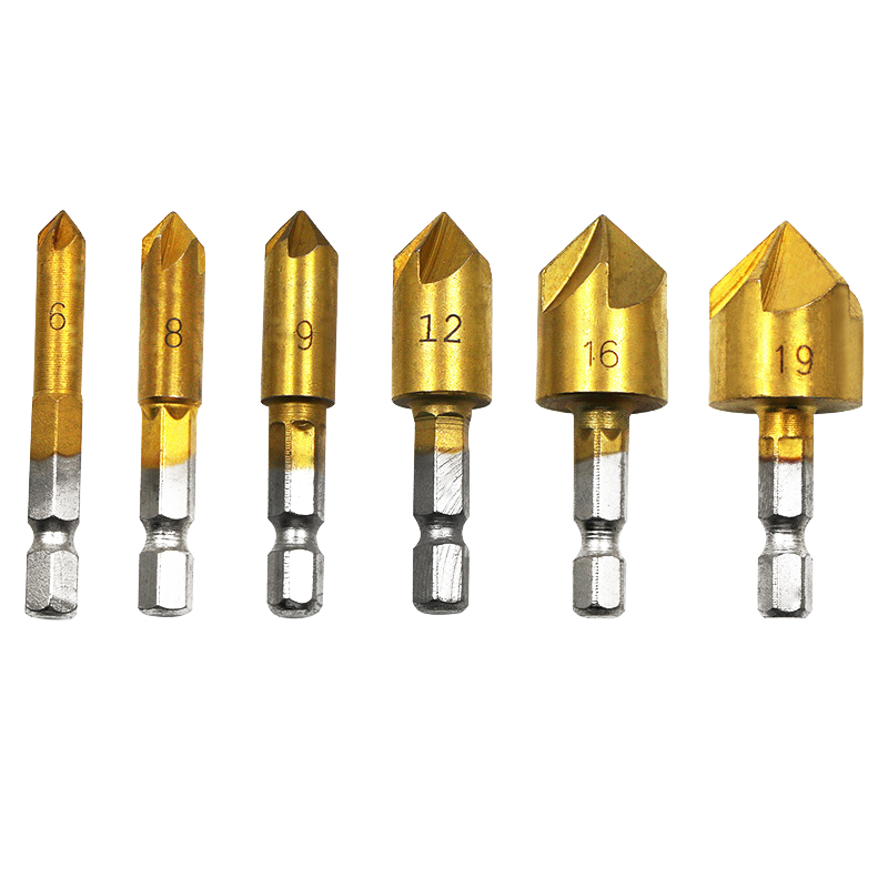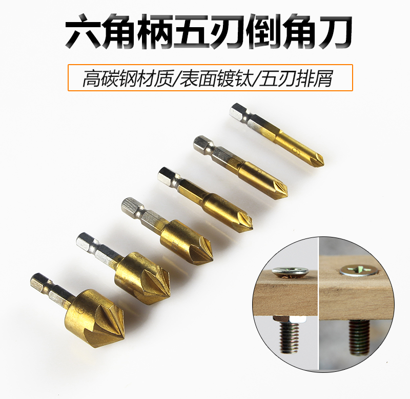 Hexagonal shank five-edge chamfers sinkhole drill-hole chamfered drill chamfered chamfered chamfered chamfered bevelling drill with groove