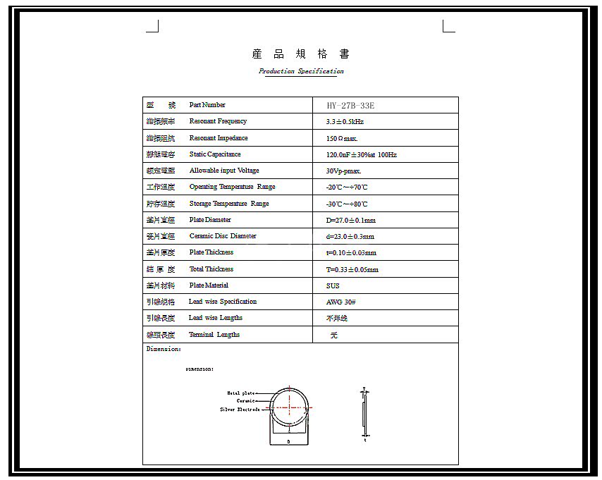 27MM piezoelectric buzz sheet piezoelectric ceramic sheet self-excited type of its excited beaming sheet copper substrate iron substrate