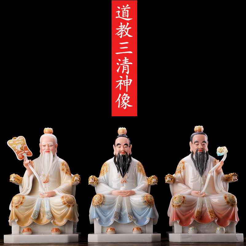 Qin Goehan Baiyu Too Upper Old Jun Statue Colorful Glaze inlaid with golden Three Qing Taoist zu Taoist zu Taoist zu Master Yuan Moral Sky