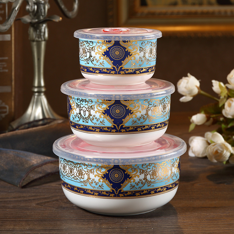Ceramic refreshing bowl Three sets refreshing box Blister Noodle Bowl seal with lid Bubble bread Lunch Box Lunch Box Home Suit