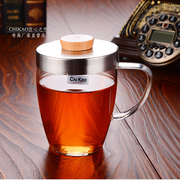 Qigao glass Flower tea cup Water cup Men's and women's cups Drinking water with lid Teacup Office filter Tea water separation