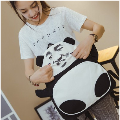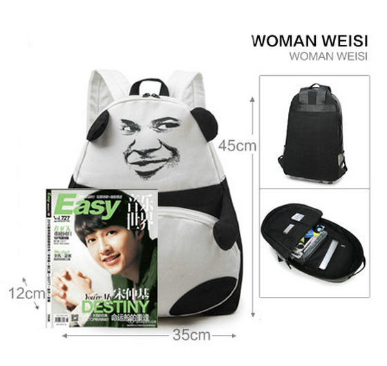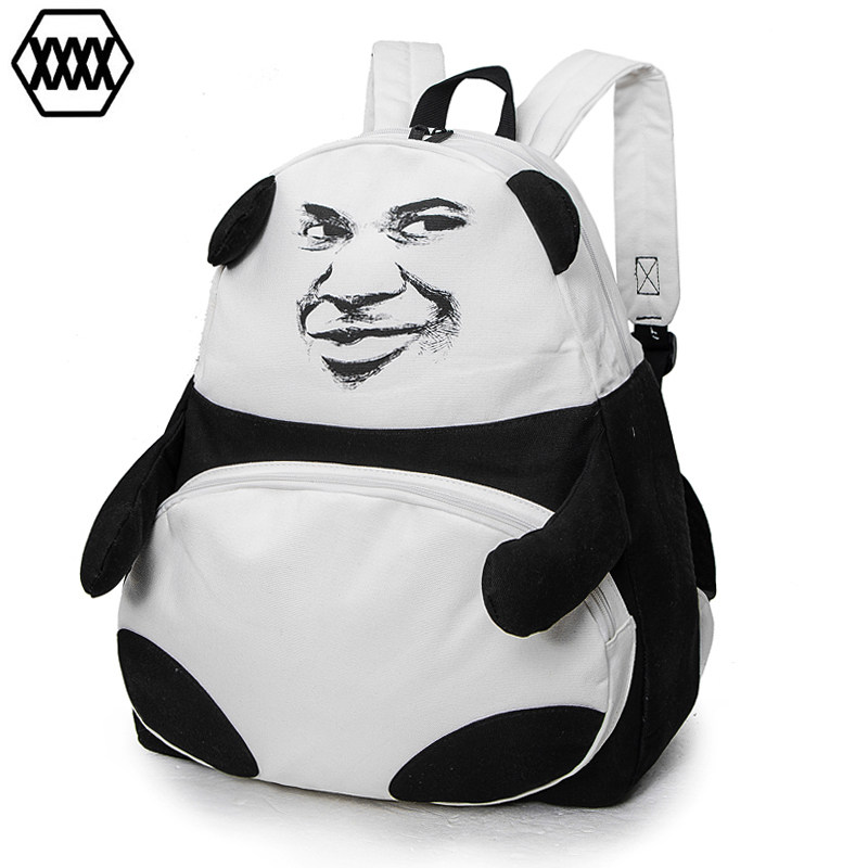 Tide Man Bag Creative Personality Gold Curator Expression SHOULDER BAG PANDA DOUBLE SHOULDER BAG FASHION TREND JUNIOR HIGH SCHOOL STUDENT CANVAS