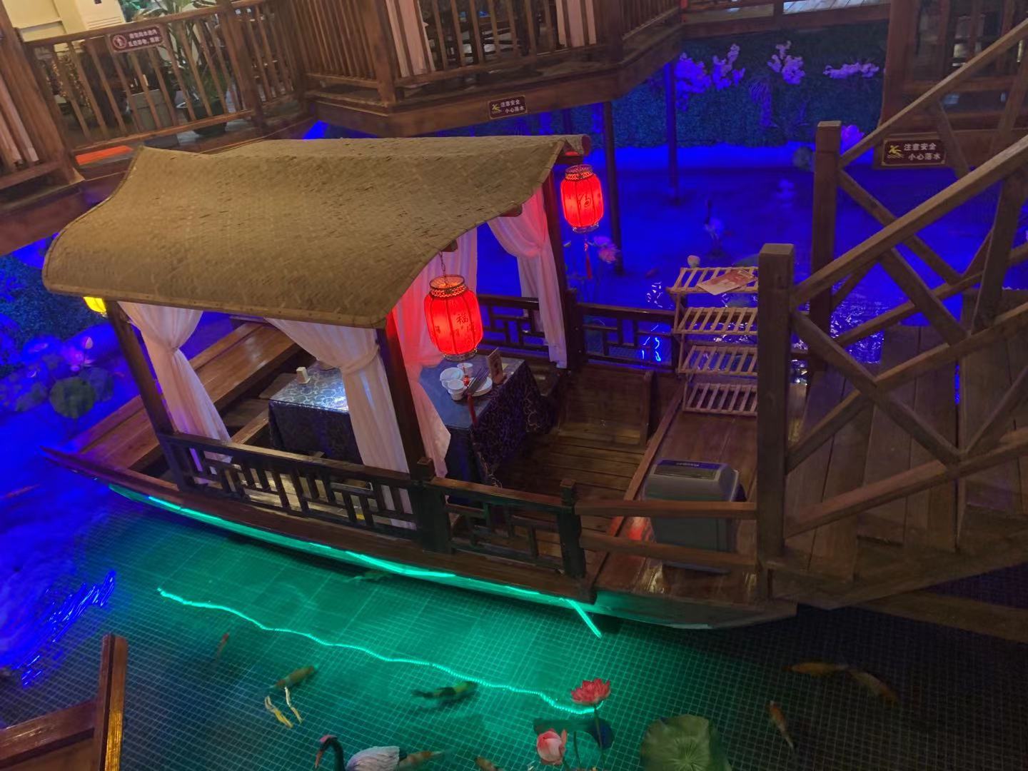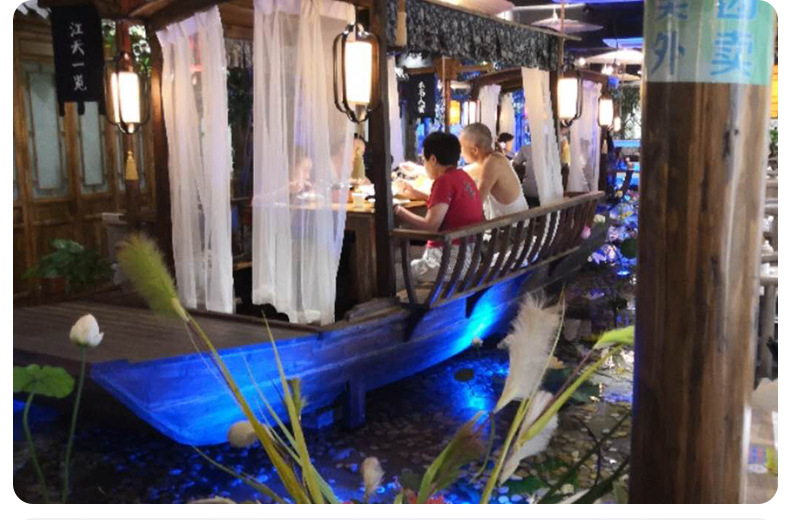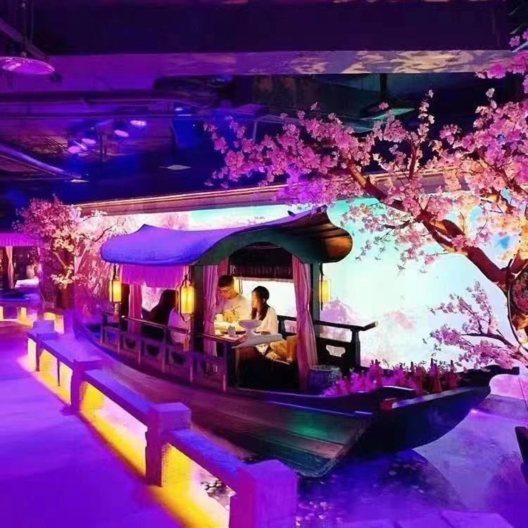 Water catering wooden boat Hotel indoor medium-sized painting boat Eat antique theme tourism sightseeing wu tent