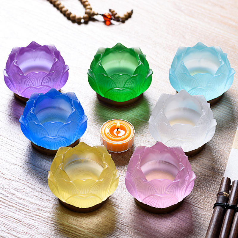 Glass seven - color Baolian candlestick copper lamp - base ghee lamp frame for the lotus lamp candlestick