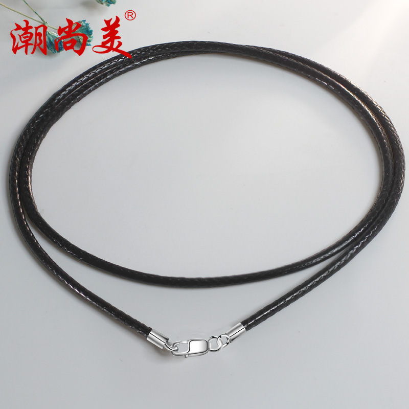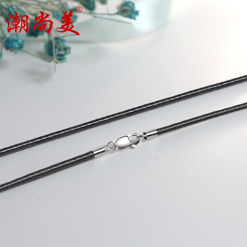 Chaoshangmei wax rope 925 silver necklace rope pendant lanyard men and women leather chain hanging neck rope black leather rope lettering