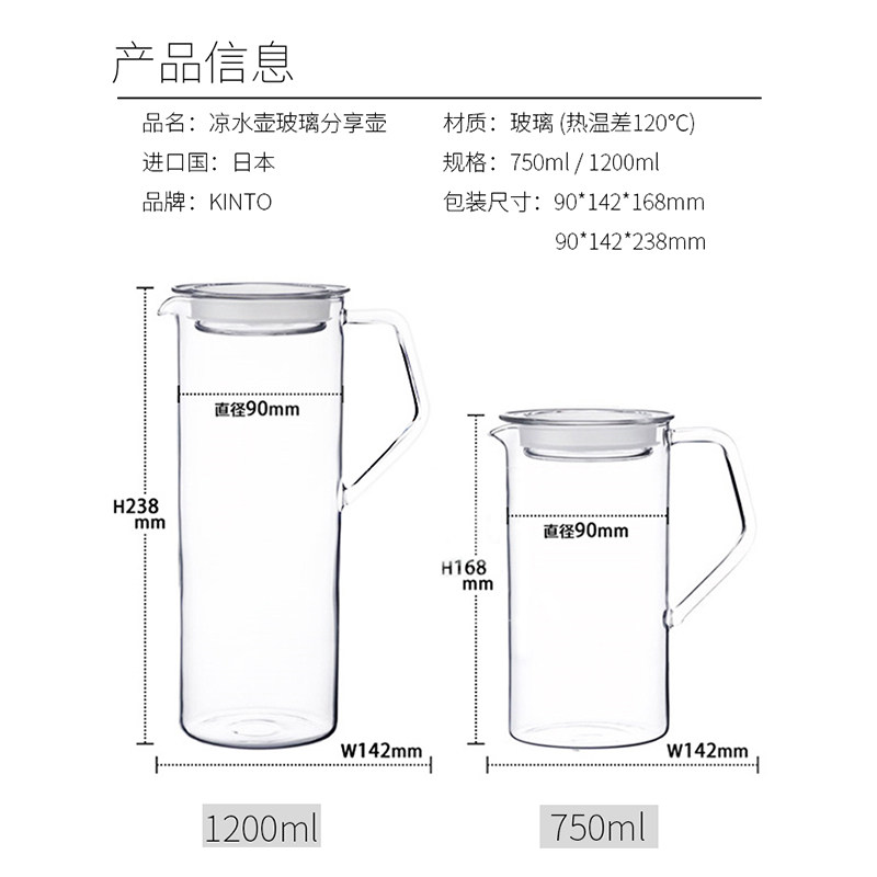 Japan Kinto cast glass cold water jug 0 75L Japan Kinto cast glass cold water jug 1 2L Japan Ice Teapot white 1 2L Resin material