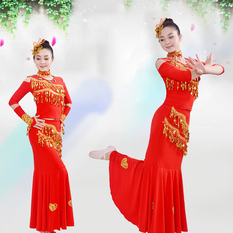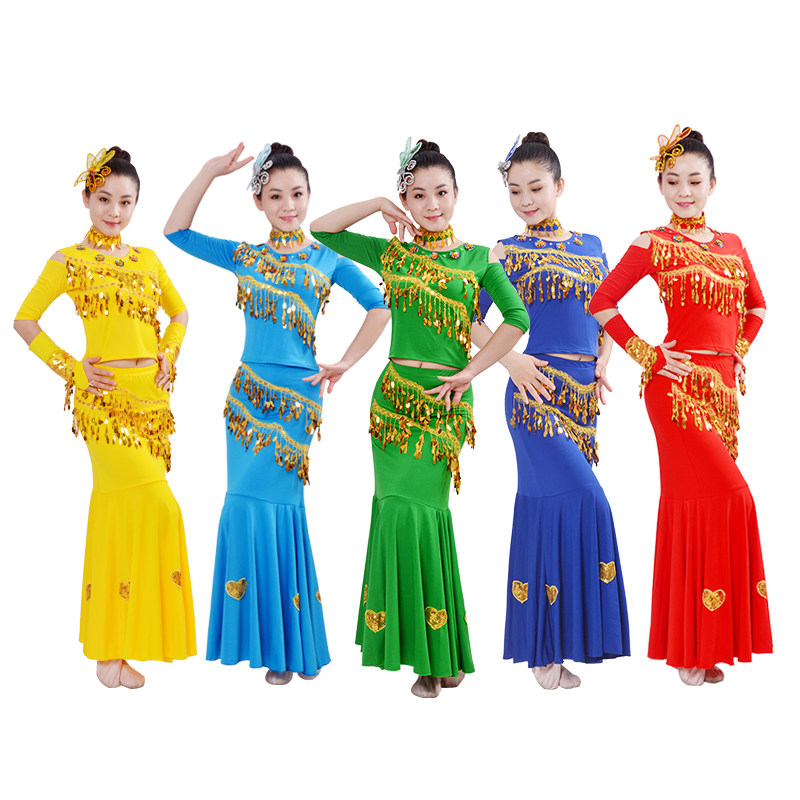 New Dai ethnic dance dress peacock dance suit adult female Thai traditional fish tail dress Huluu silk art exam in costume-Taobao