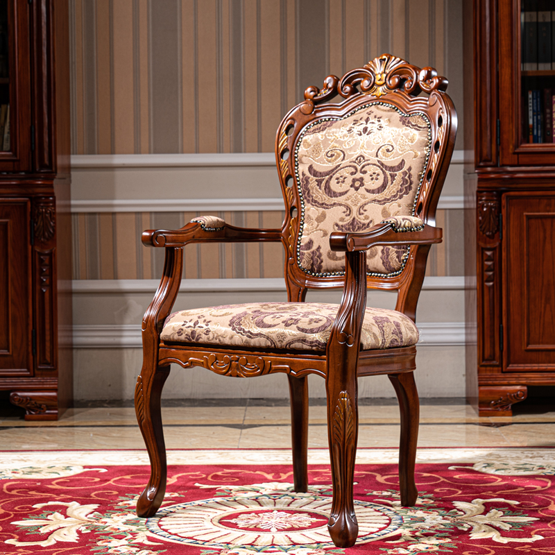 American countryside solid wood armchair dining chair leaning on back chair European style fabric chair computer chair book table and chairs retro wood chair-Taobao