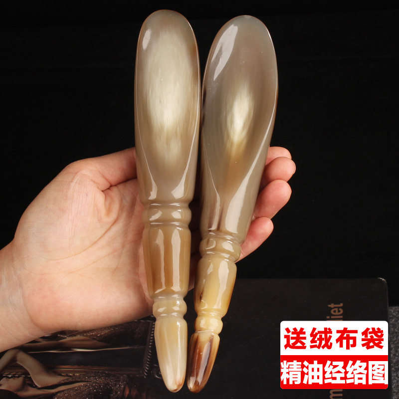 Solid white buffalo horn massage stick scraping cylinder thickened face beauty lifting point Yak Horn Universal Female Dial