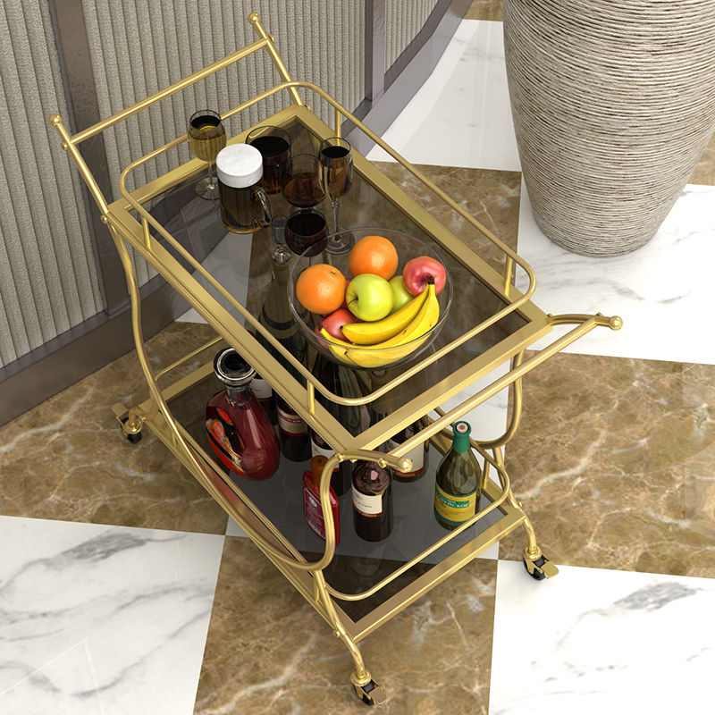 Nordic trolley golden hotel wine service car mobile tea table cake car wrought iron home dining restaurant dining car