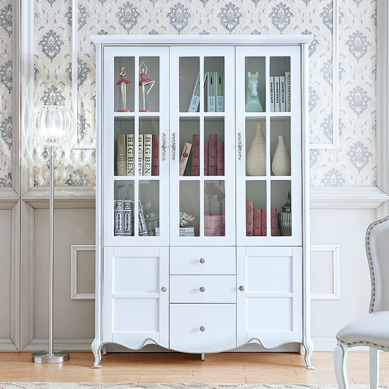 European-style bookshelf solid wood three-door bookcase with glass door combination modern minimalist multi-functional bookcase with storage drawers
