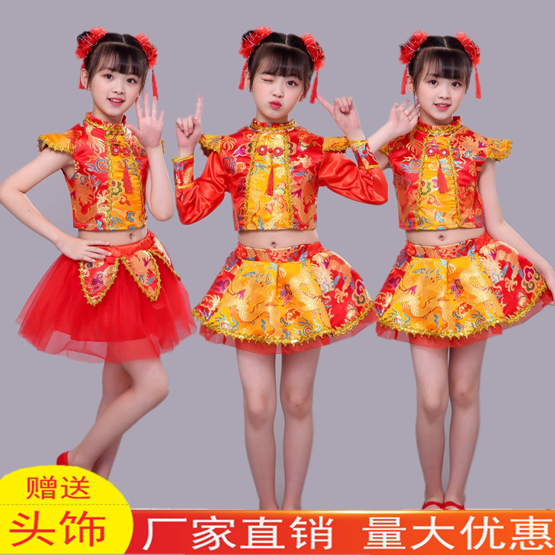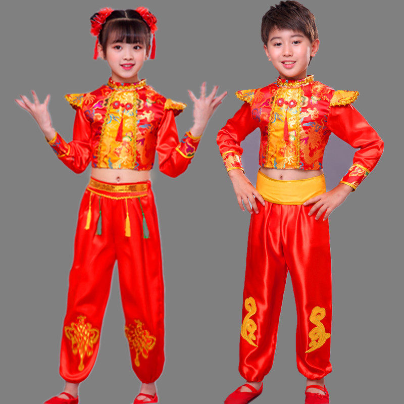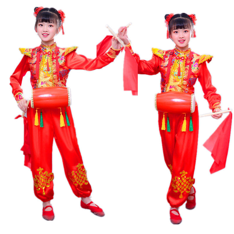Rap China's Red Ethnic Wind New Year's Children's New Year's Eve Children's Performance Festive Shoots to Beat Drum Suit Lantern Dance Performance Suit