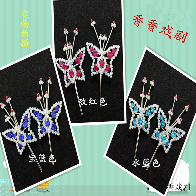 Special offer drama headdress butterfly sideburns wood drill small butterfly ancient costume film and television performance Peking Opera Tsing Yi Hua Dan