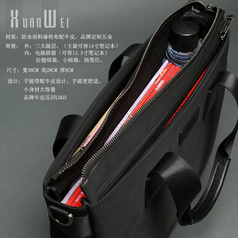 Xuan Men's briefcase for men's briefcase Canvas Accessories Genuine Leather Handbag Men's Bag Business Large Capacity Brief Leisure Brief