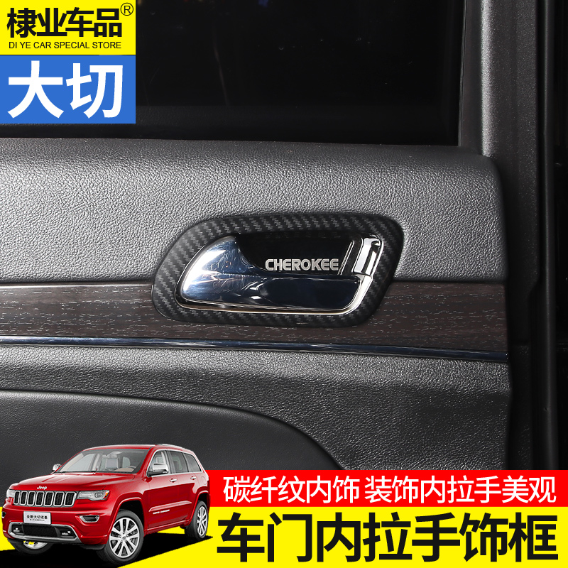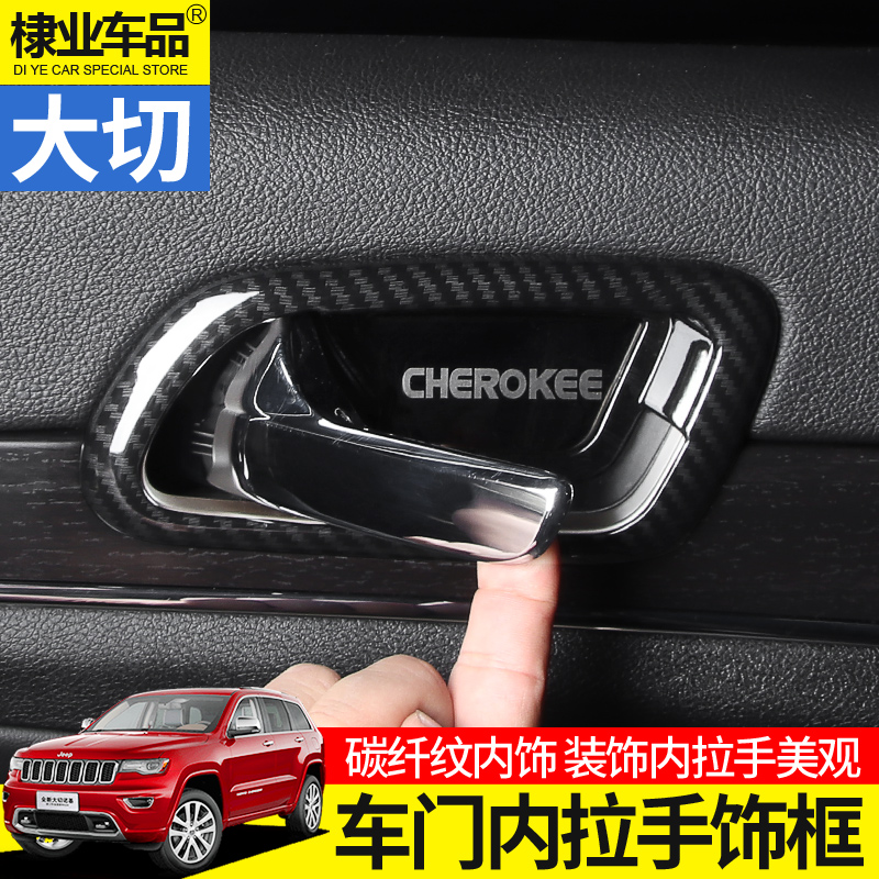 Inner door wrist decorative frame is dedicated to jeep11-21 Grand Cherokee modified car door inner handle carbon fiber sequins