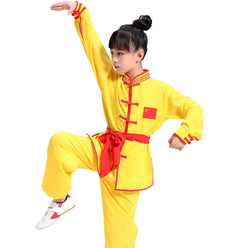 Children's martial arts practice to serve girls young children Tai Chi performers Boy Long Sleeve Kung Fu Performance Costumes