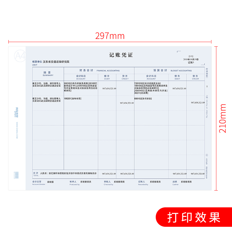 UF Government A4 Parallel Accounting Voucher New Government Accounting System 2020 Financial Photocopying Paper Software and Administrative Institutions Applicable Budget Accounting and Financial Accounting KPJ501