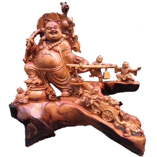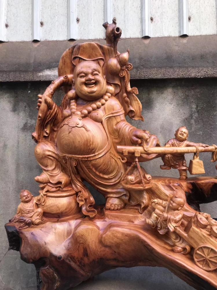 Lao flower pears wood root sculpted Millver red wood sculpted great belly Buddha trick into the foyer of the living room foyer artworks
