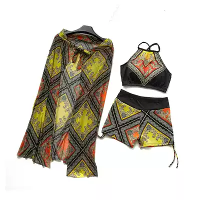 Fairy fan hot spring swimsuit women's conservative two-piece three-piece set gathered thin belly sexy ethnic style swimming suit