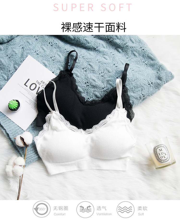 Korean Version Wrapped Chest Smear Student High School Girl Underwear Woman with no steel ring to woo thin lace small frescoed smear
