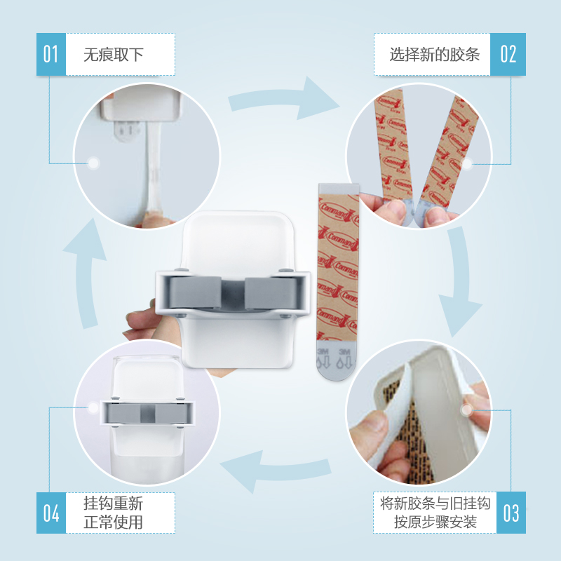 3M Mop Hooks Free wall-mounted wall hooks No-mark sweep Grip Powerful Sticky Glue Hanging Mop Deity Free of punch