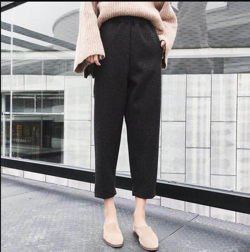 Hong Kong Tide Woman Missell Rock Pants Winter Han-colored Twins plus-down Nine-point Lean Halen Trousers