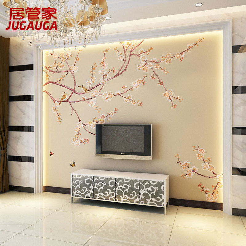 New Chinese sofa TV Background wall Living room Bedroom Hotel Dining Room Custom Flower Bird Mural Wall Cloth 3D Film and TV Wall
