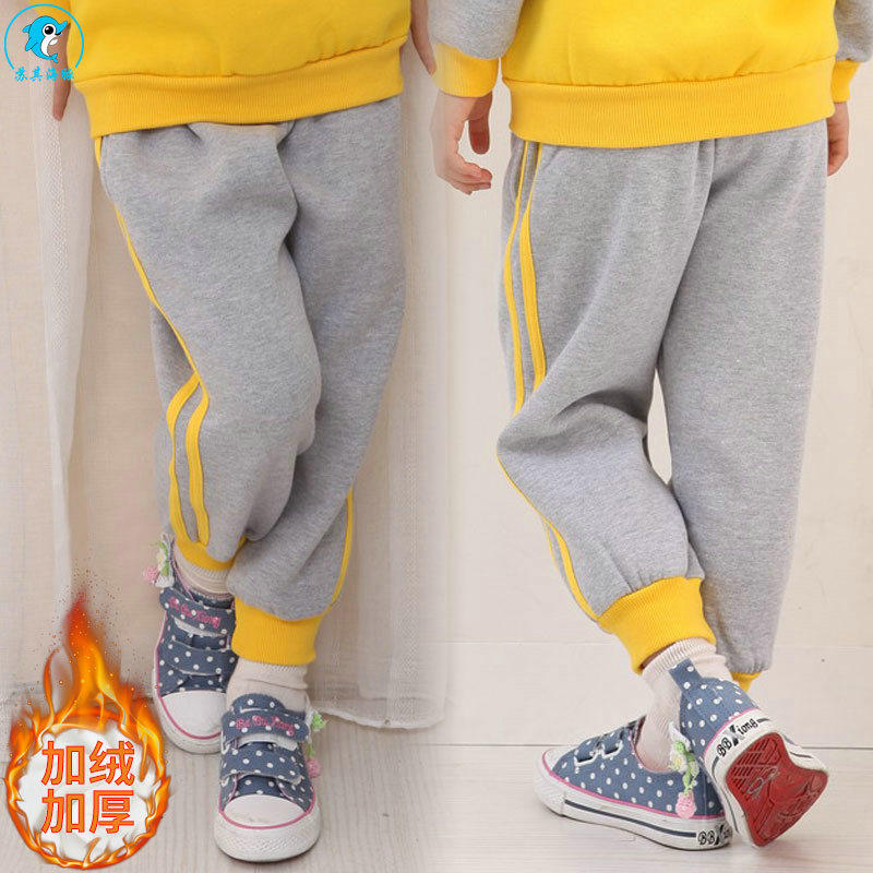 Winter plus trousers thick tight casual sports pants for children's school trousers tight waist cotton button pants