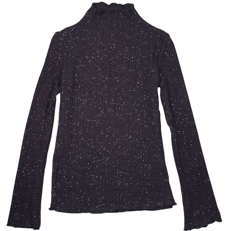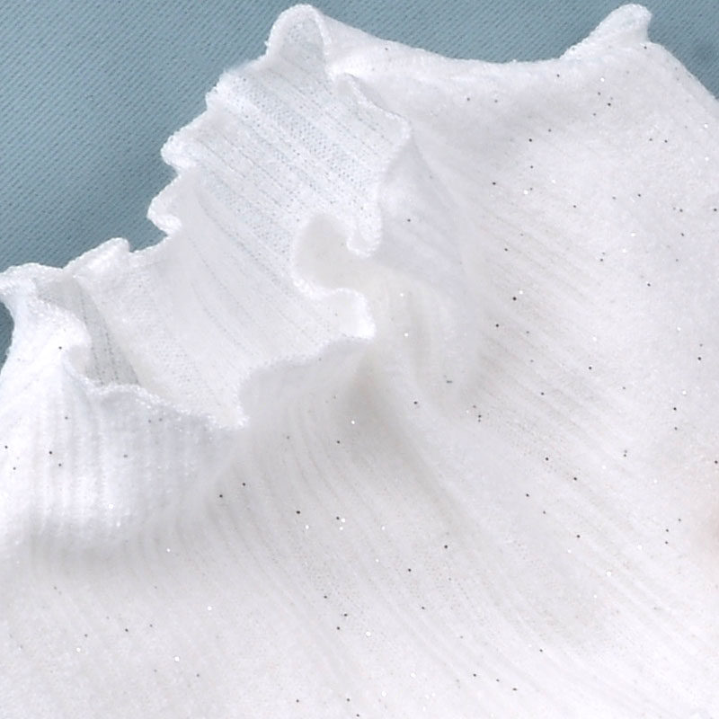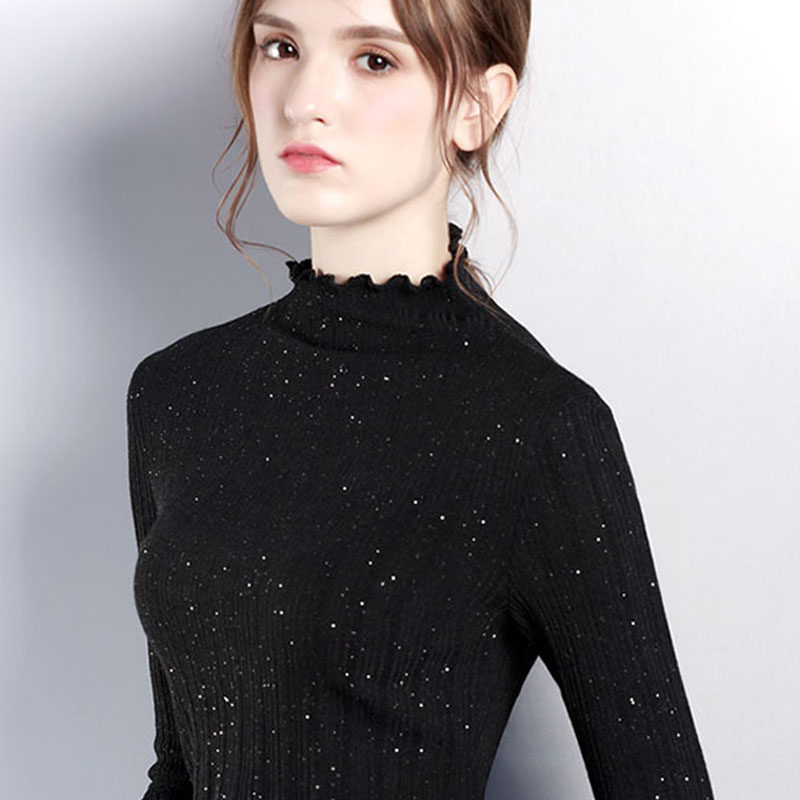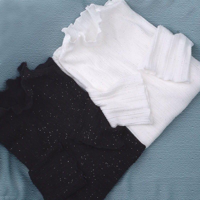 High collar wooden ear knitted base shirt flared sleeves short women autumn and winter New ruffles black and white boutique top