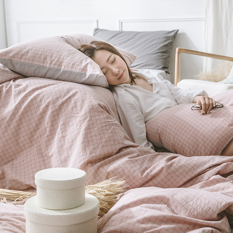 Nordic washed cotton cotton four-piece simple bed sheet quilt cover three-piece student dormitory bedding