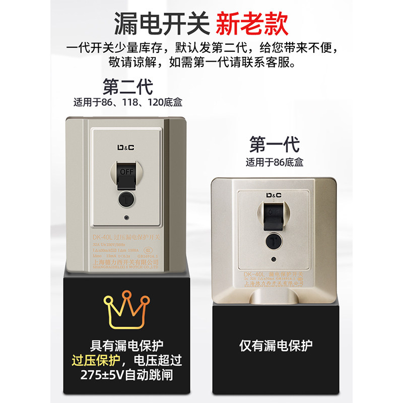 Shanghai Delixi switch 32A household air conditioning electric water heater leakage protector Air circuit breaker 40A plug