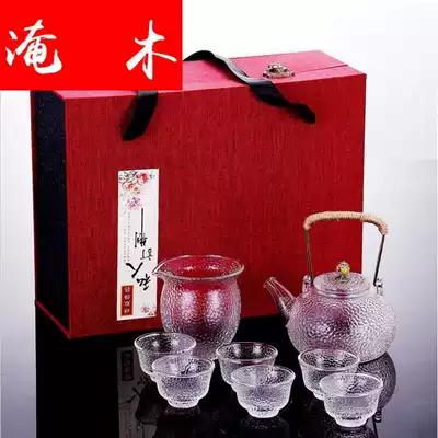Flooded wood heat-resistant hammer glass kung fu tea set household flower tea lifting beam teapot tea cup black tea tea breinner