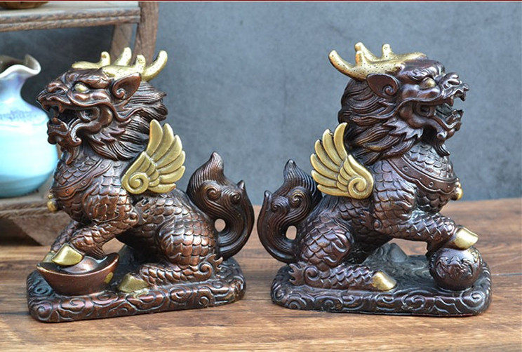 Bronze Kirin Feng Shui Swing Decoration Na Fuhua Lift Stairs Red Yellow 2 Home Shop Ornaments