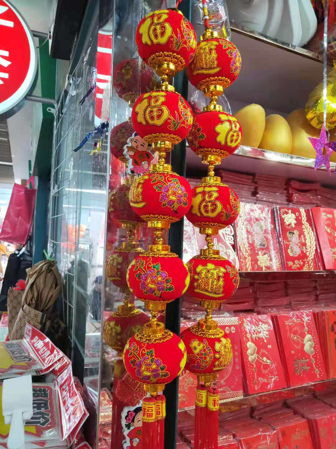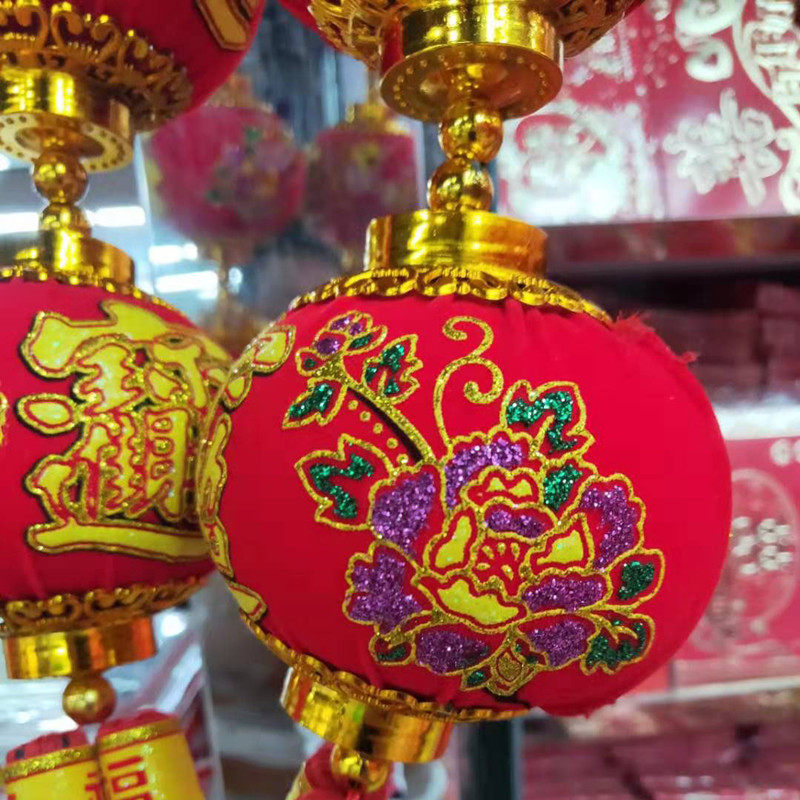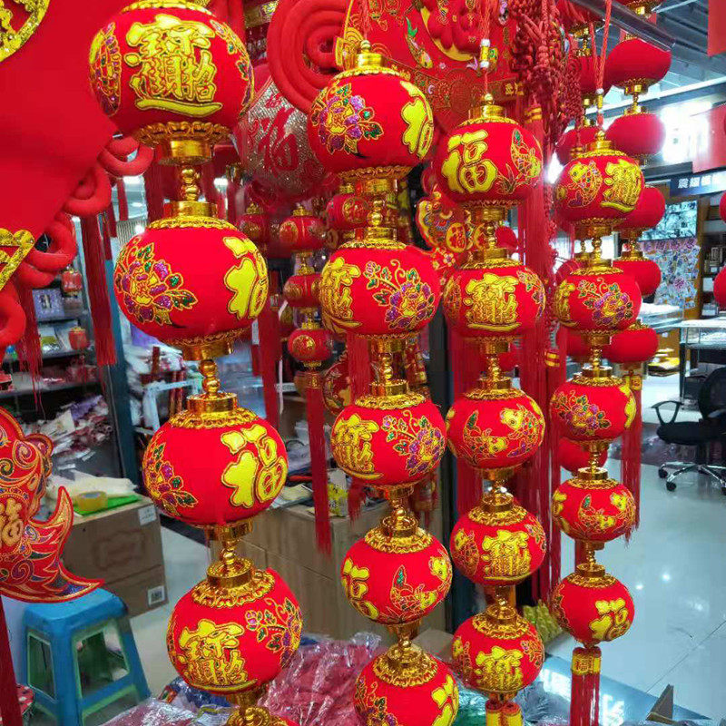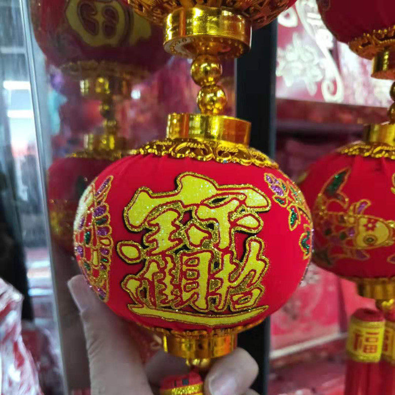 New Year's New Year's Day New Hanging Decoration Five Blessingg Light String Cage Ball Fish Fu Small Lantern Flannel Fu Word Lantern String Ball Spring Festival