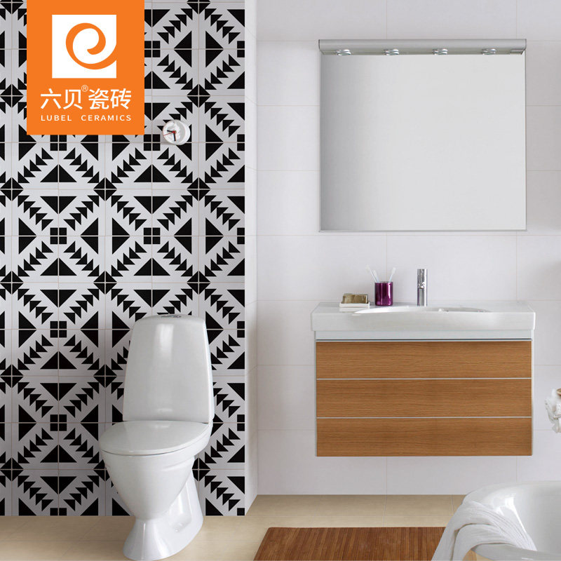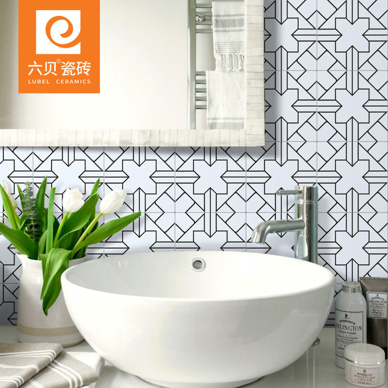 Guangdong all-porcelain black and white flower brick 200 Nordic tile wall brick dining room Kitchen Bathroom Makeup room tiles anti-slip