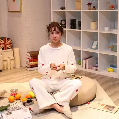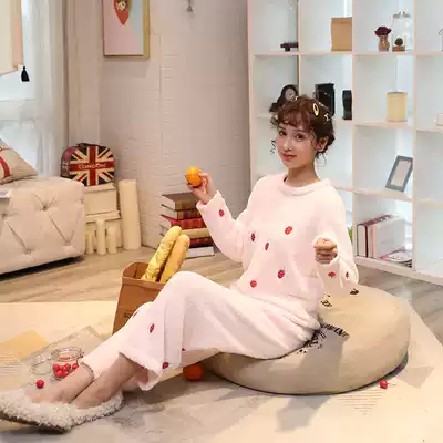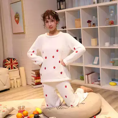 Strawberry pajamas women's autumn and winter soft and thick warm loose round neck pullover cute Sweet Home suit winter