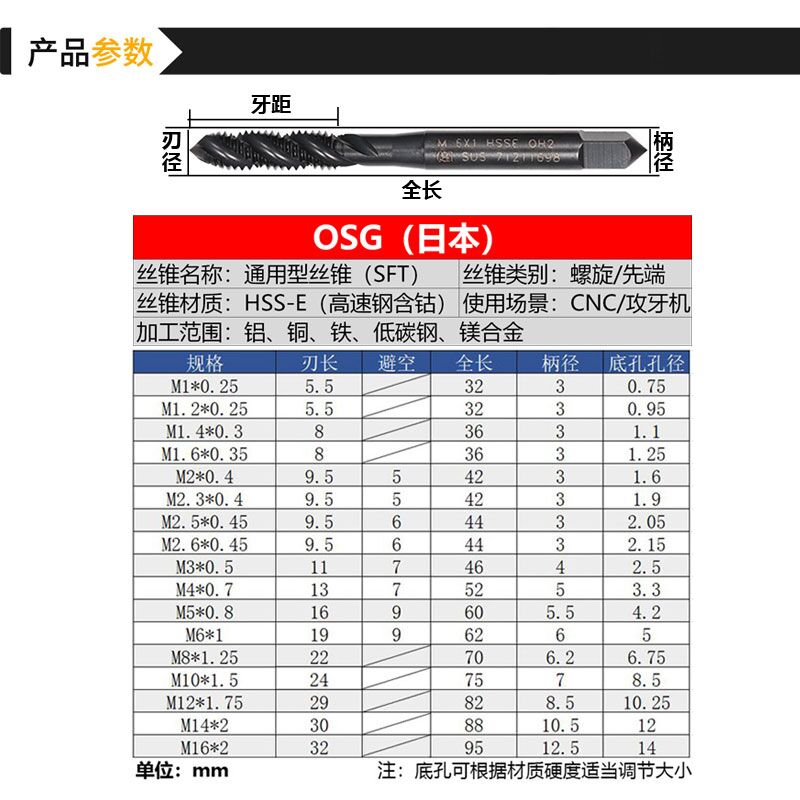 OSG tap machine with tap M1m2m3m4m5m6 Japan importED SUS FT stainless steel screw tapping